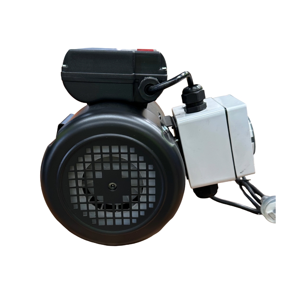SPECIFICATION AND TECHNICAL INFORMATION INCLUDES AN ON / OFF SWITCH AND LEAD WITH 10A PLUG Motor Description: Cement Mixer Motor. Supply: 240 Volts, 1-Phase, 50 Hz. Enclosure: TEFC – IC411. Capacitor Capacitor Start / Capacitor Run Protection: IP54 Protection Frame: B56 Aluminium. Winding Insulation / Rise: Class “F” with < 80ºC rise. Design Ambient: -20 to +40 degrees C. Design Altitude: Up to 1000 metres above sea level. Method of Starting: DOL starting and operation. Load coupling: Suitable for Direct Coupled / Vee belt application. Duty Rating: S1 Terminal Box: Polypropylene. Top Mounted Terminal Box c/w On / Off Switch Cooling Fan: Polypropylene Fan Cowl: Pressed Steel Bearings: Sealed for life bearings for frames up to and including 160. Paint system: Standard paint finish in Teal. Additional features: 300mm Lead and 10amp plug Manual Overload