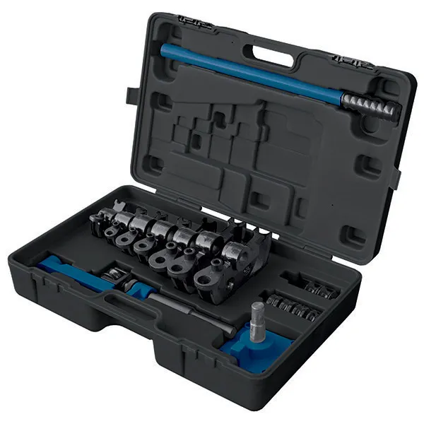 FEATURES Capable of bending angles from 0° to 90° Cold bending, no pre-warming of pipe is required Heavy duty castors Flip over top frame to easily remove bent pipe 2 stage heavy duty hydraulic pumping system Longer piston stroke per pump and optimized hand force minimises operator fatique Supplied in wooden case SPECIFICATIONS Suitable for Carbon Steel and Wrought Iron Pipe Ø1/2” – Ø2” NB pipe capacity 1/2”, 3/4”, 1”, 1-1/4”, 1-1/2”, 2” cast steel formers 0° to 90° Bending angle 13,000kg Force capacity 250mm Stroke. ITM