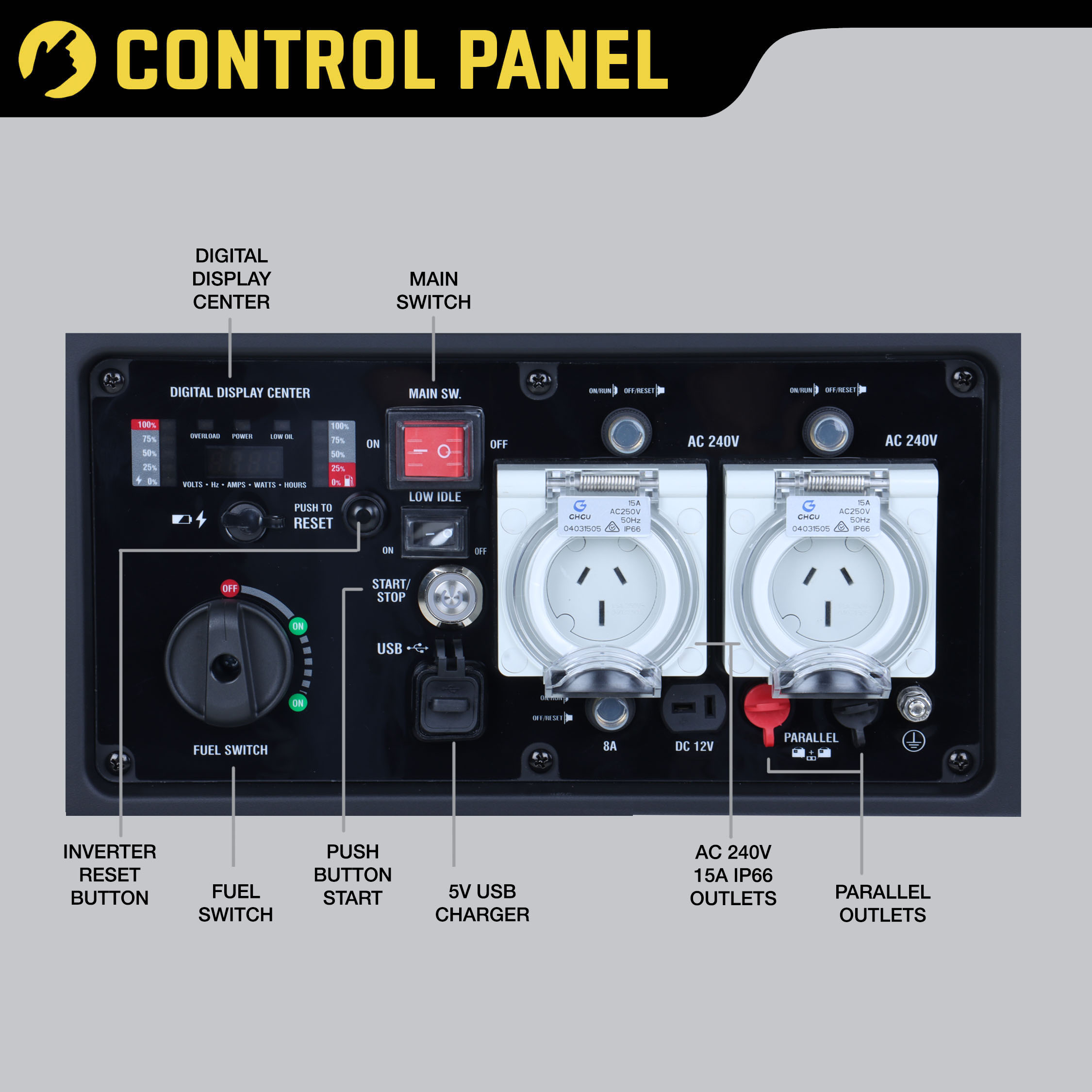 It is equipped with 2 x 15 Amp 240 Volt IP66 socket outlets which enables you to safely run two appliances at once and still have the 12 Volt charging capabilities. With this Easy-to-Use Portable generator, you can safely enjoy your electronics or small appliances with a quieter and safer power solution compared to traditional generators.